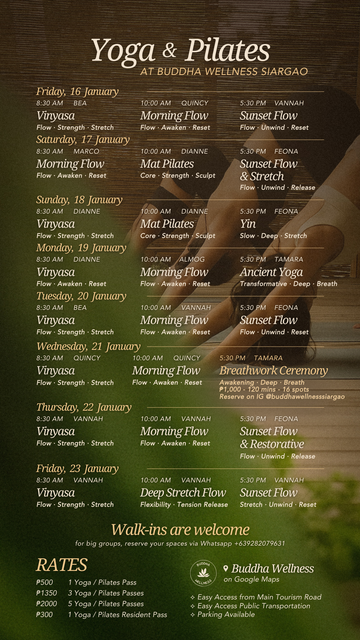 - Includes access to 1 yoga/mat pilates session (link to schedule)