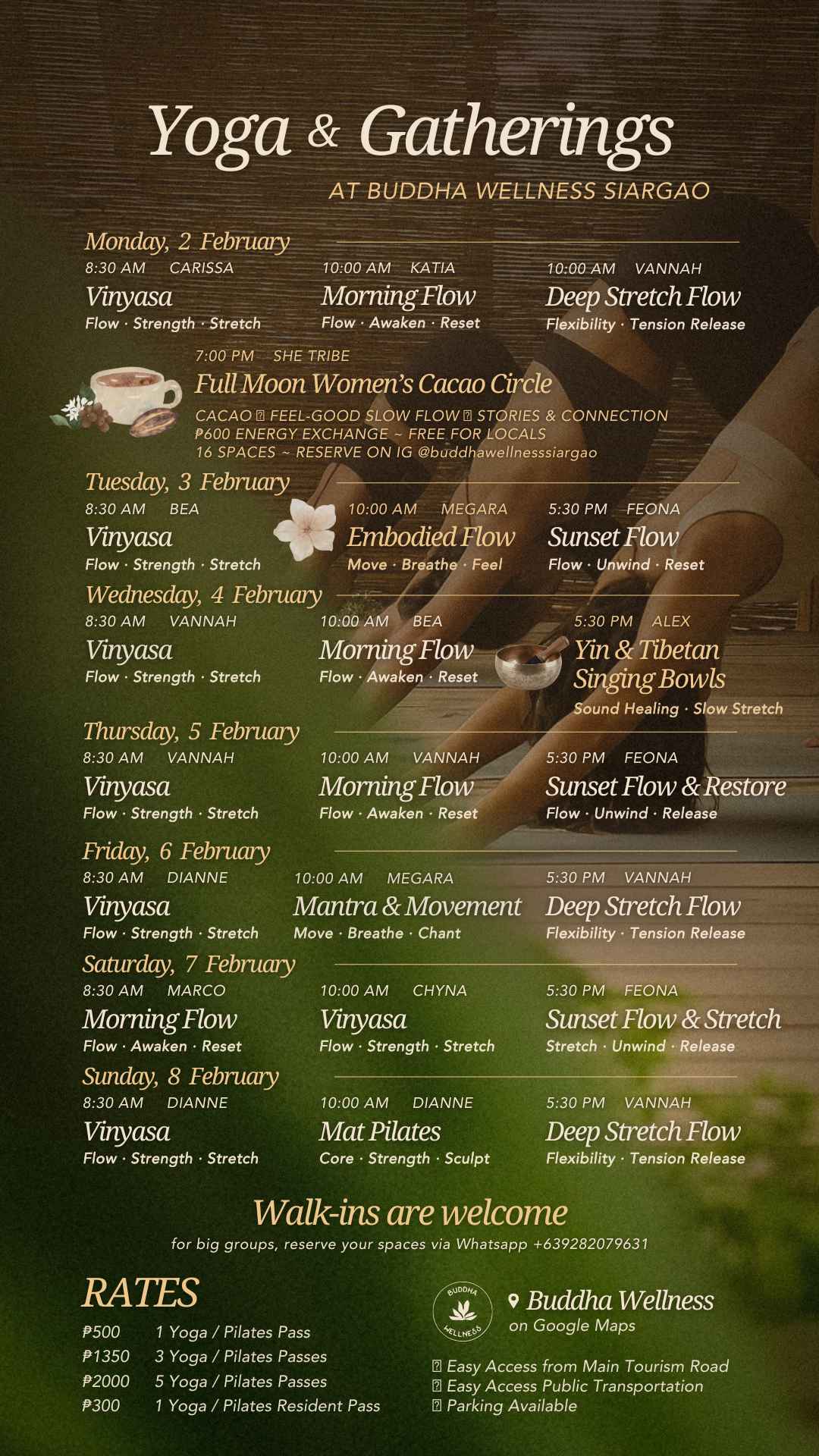 For bigger groups, we recommend reserving mats ahead so we can hold space for everyone.